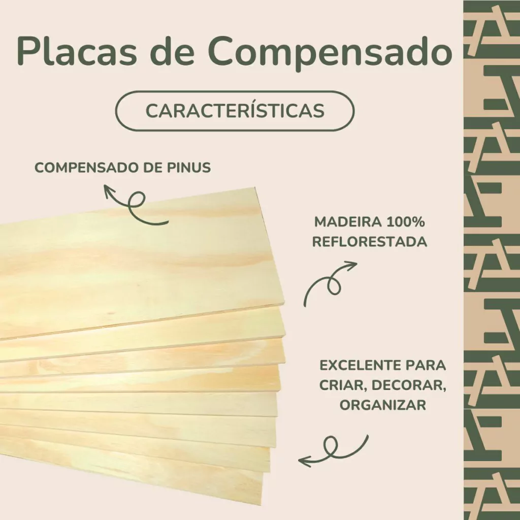 Material: Compensado de Madeira Pinus (Madeira Reflorestada)