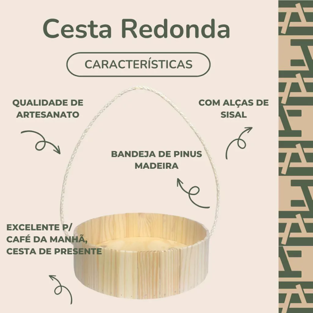Surpreenda com elegância e praticidade! Nossa Cesta Redonda Gourmet de Madeira Pinus é perfeita para quem busca uma embalagem rústica e charmosa para seus presentes especiais. Produzida em madeira pinus de alta qualidade, essa cesta alia resistência e beleza natural, garantindo um acabamento impecável.