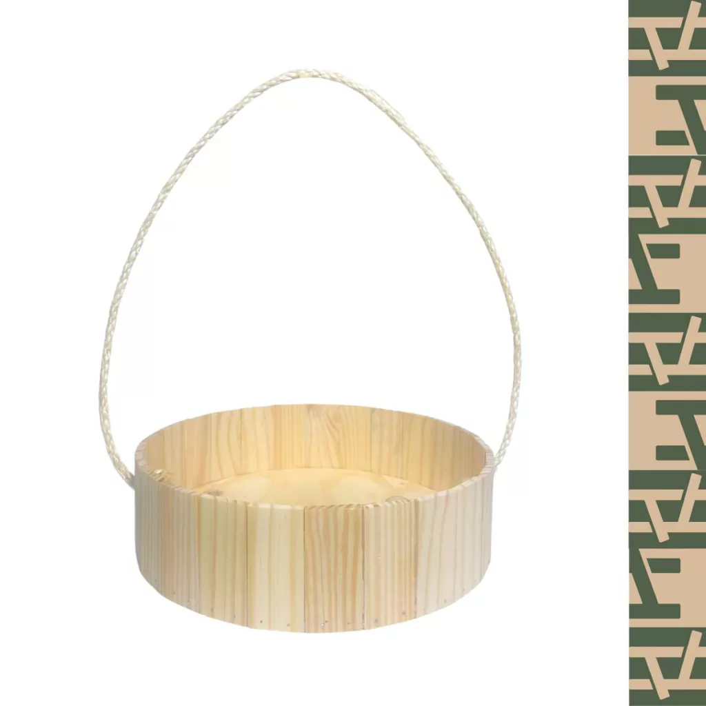 Cesta Redonda Gourmet de Madeira Pinus com Alça – A Embalagem Ideal para Presentes Sofisticados