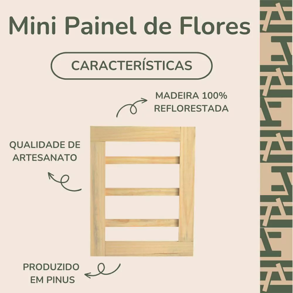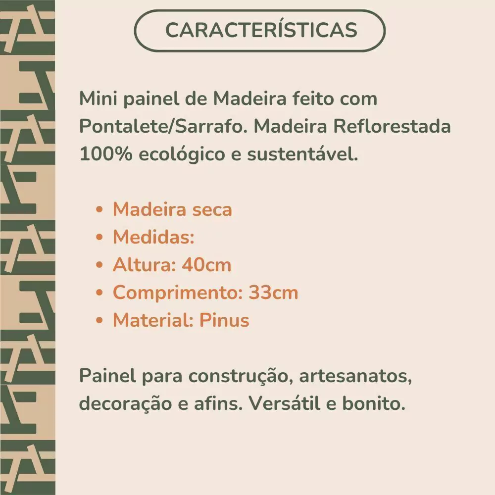 Produzido com madeira pinus de alta qualidade e sustentável, este painel oferece resistência e durabilidade, garantindo um acabamento natural que realça a beleza da madeira. Seu design prático facilita a fixação de vasos e acessórios, tornando a decoração simples e charmosa.